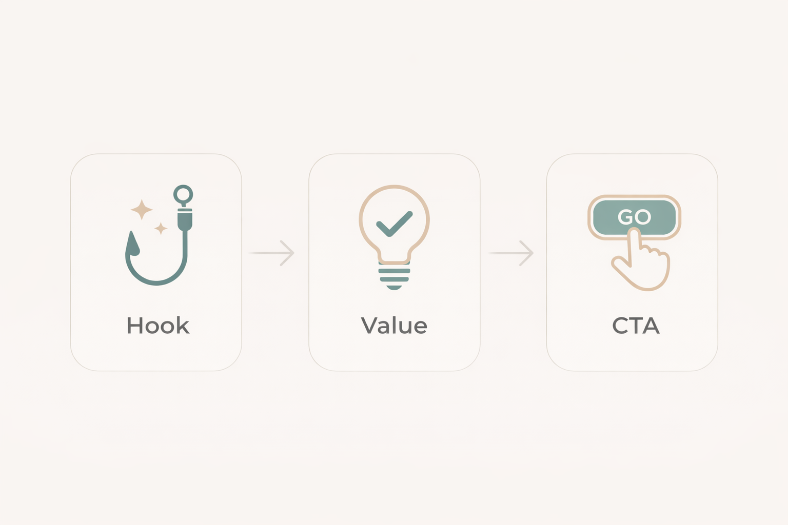 מה ההבדל בין עריכה “יפה” לעריכה “מוכרת”? “מוכרת” בונה מבנה: Hook-ערך-CTA.
